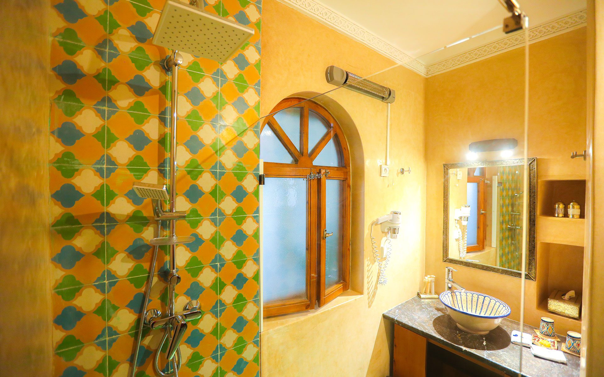 L’harmonie entre le mobilier traditionnel marocain et des touches modernes crée une ambiance où le confort rencontre la tradition. Après une journée bien remplie à explorer les trésors d’Essaouira, détendez-vous pleinement dans cette atmosphère apaisante. Les équipements de cette chambre comprennent un lit double de 160cm, un coffre-fort pour vos objets de valeur, une salle d’eau avec douche, des toilettes séparées, un sèche-cheveux et des articles de toilette gratuits.